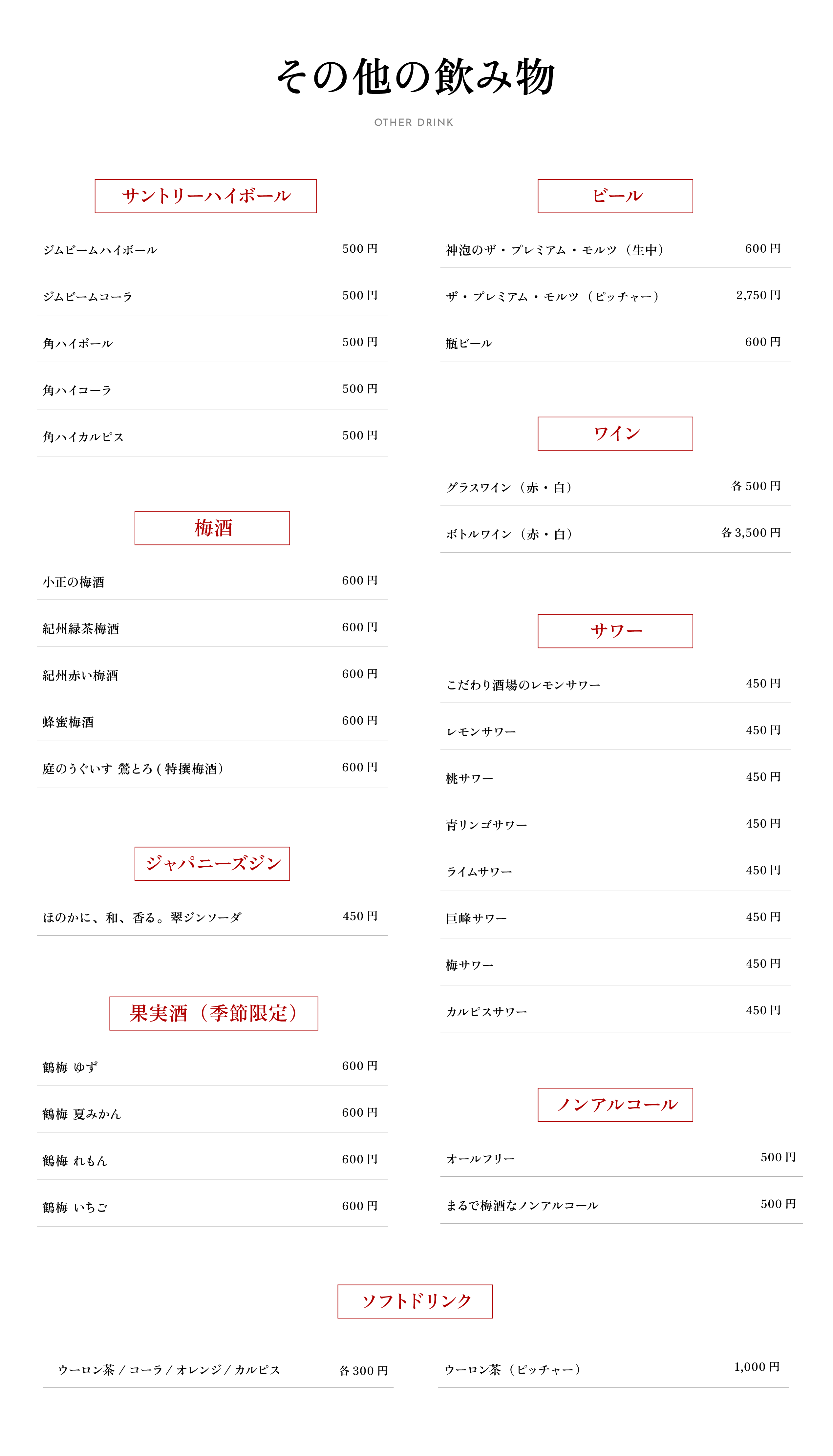 焼酎ボトルもありますので、詳しくは店舗にお問い合わせください。
